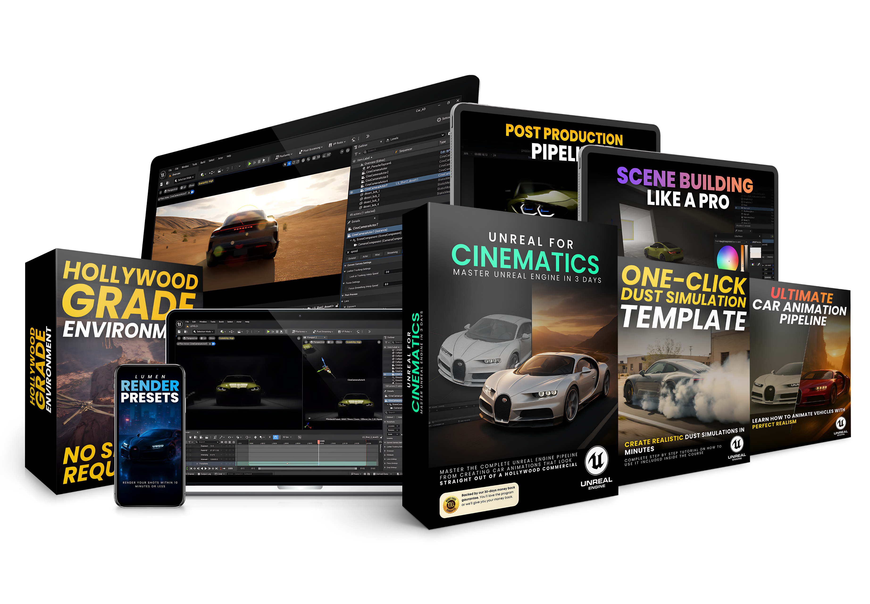 A: Definitely not. This is a streamlined production pipeline that took years to develop while working with real brands and projects. You’re getting the exact workflow, tools, assets, and post-production secrets I use in real cinematic work—not fluff or recycled tips.